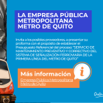 METRÔ DE QUITO – CONVITE PARA LICITAÇÃO MANUTENÇÃO DE SINALIZAÇÃO FERROVIÁRIA sexta-feira, 14 de novembro de 2025